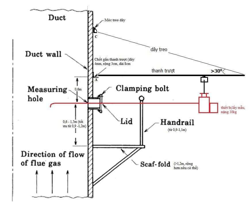 - Tất cả các vị trí ống khói của hệ thống xử lý khí thải phải có lỗ khoan lấy mẫu và sàn thao tác.